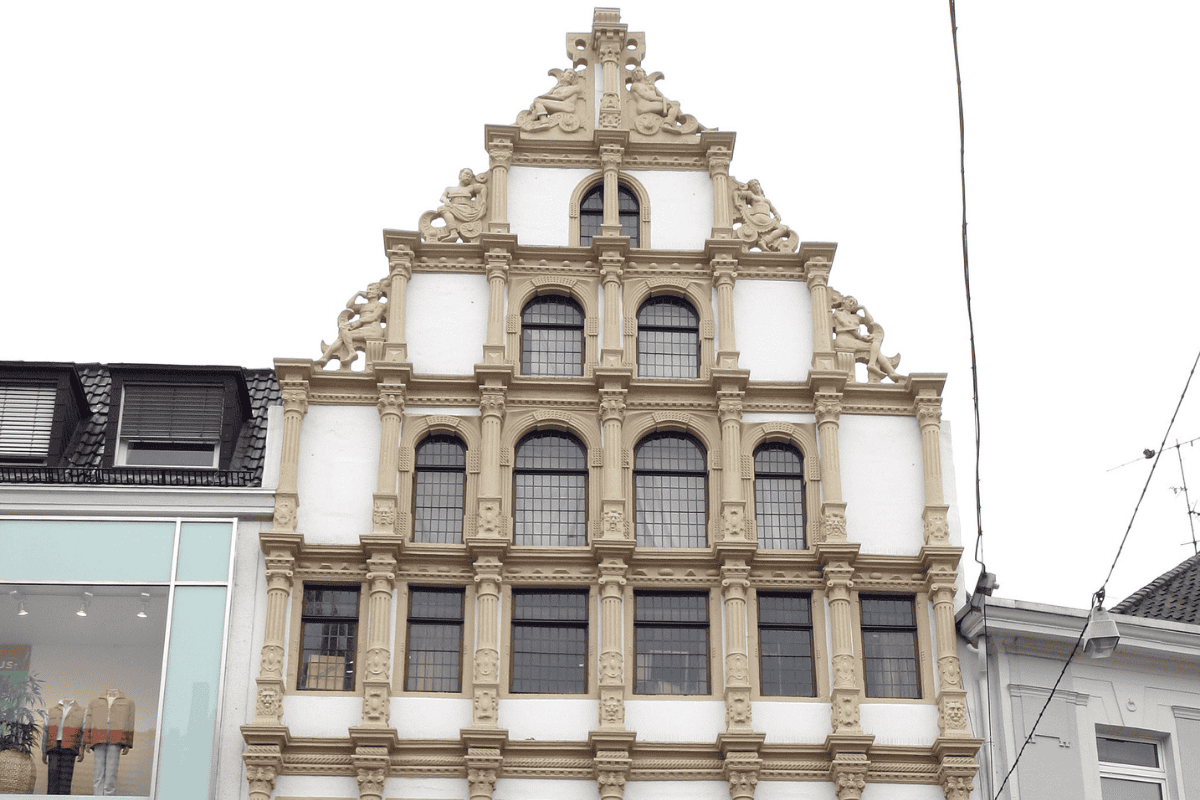 Um 1590 wurde die Fassade eines der bedeutendsten Bürgerhäuser Mindens, das im Kern älter ist, vollendet. Die aufwendige Werksteinfassade der Weserrenaissance mit Giebelschmuck aus Figuren und Voluten (Schneckenformen) entstand in mehreren Bauphasen.