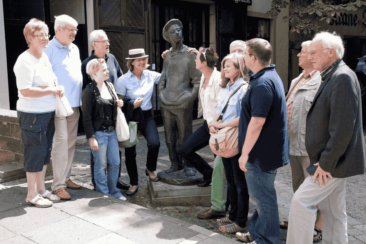 Wenn Sie das obere Plateau erreicht haben, dann sagen Sie doch einmal der Mindener Symbolfigur, dem „Buttjer“ guten Tag, die hier als Bronzeskulptur steht. Er ist Mindens charmantes Plus an Historie und Sprachkultur. „Buttjer“ war eine Bezeichnung für die Bewohner der Oberen Altstadt, die auch ein Wohngebiet der Sinti war. Hier und auch in der Mindener Fischerstadt wurde zum Teil die Buttjer-Sprache gesprochen, die schon um 1850 erstmals erwähnt wird und aus heutiger Erkenntnis rund 900 Worte umfasste.
