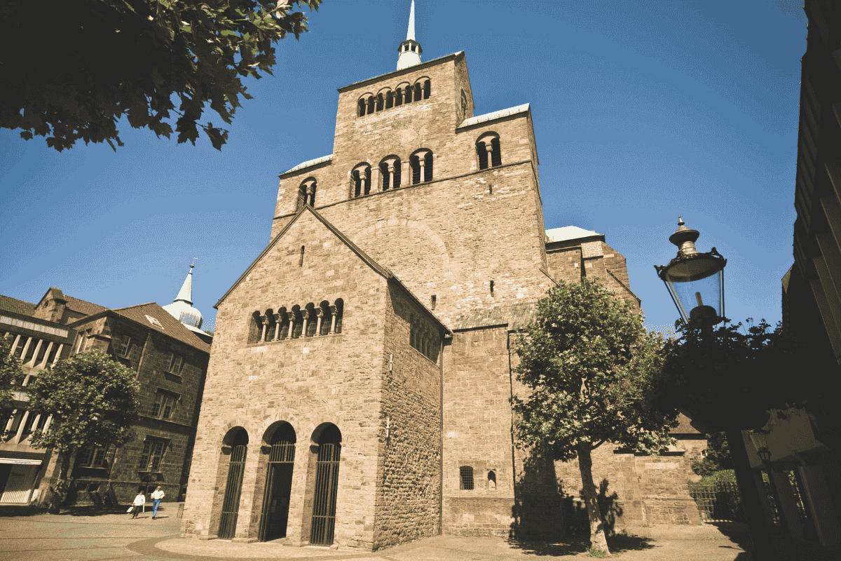 Karl der Große war es, der 799 an diesem Ort auch das Bistum Minden gründete. Nur wenig später entstand hier der erste Dom als einfache Saalkirche an diesem ursprünglichen Siedlungskern unweit der Weser. Aus der Saalkirche wurde ein Gotteshaus mit dreischiffigem Langhaus, einem Querhaus und einem Chor mit Krypta. Im 10. Jahrhundert entstand das zentrale Westwerk.